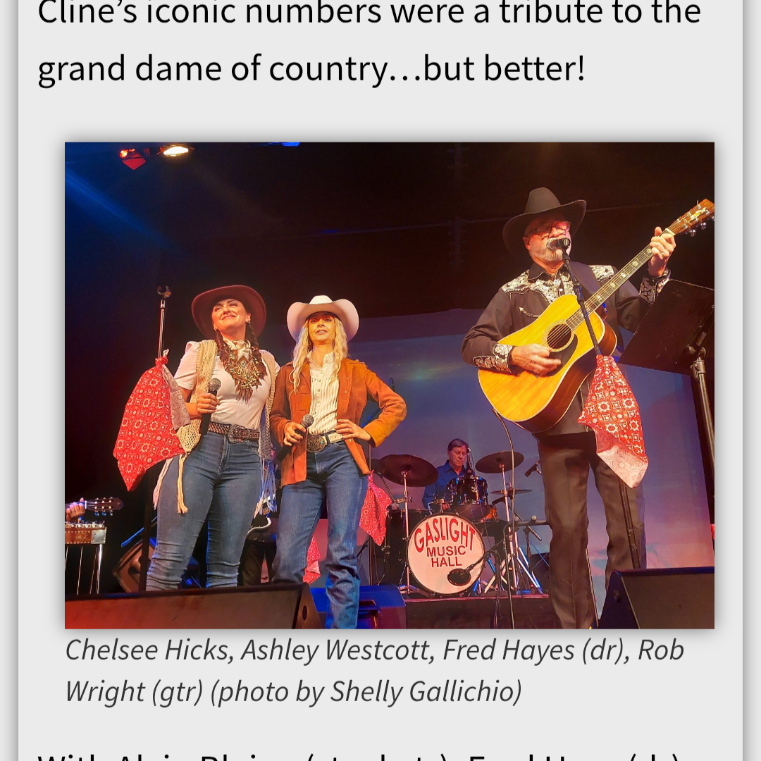 Rob Wright (bj/gtr) with the Wildcat Jazz Band had a set titled “My Heroes Have Always Been Cowboys” with emphasis on the classic cowboy tunes of the ‘50s and ‘60s. Think Roy Rogers, Gene Autry, Johnny Cash and others of that fabulous era. With vocalists Ashley Westcott and Chelsee Hicks, the trio brought us back to that bygone era. Ashley did some superb yodeling and did a great rendition of Leroy Van Dyke’s “Auctioneer’s Song” with all the words that could possibly be uttered in any one moment. Chelsee’s interpretations of Patsy Cline’s iconic numbers were a tribute to the grand dame of country…but better!